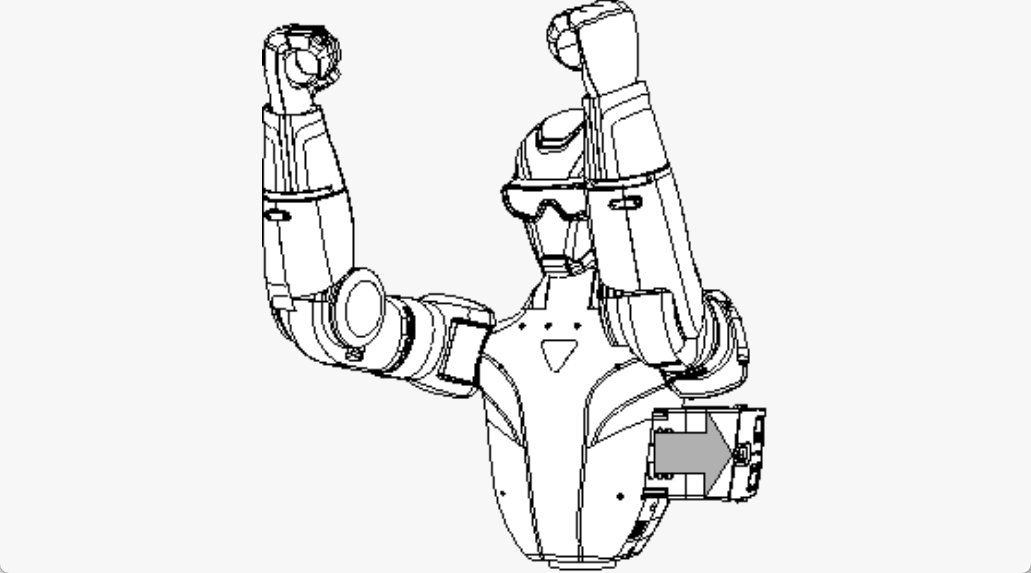 Before powering on, suspend the R1 using a suitable support frame, with the robot’s front facing forward. Verify that the surrounding area is clear of people and obstacles. Arrange the arms and legs in a natural resting posture as illustrated in the reference figure.