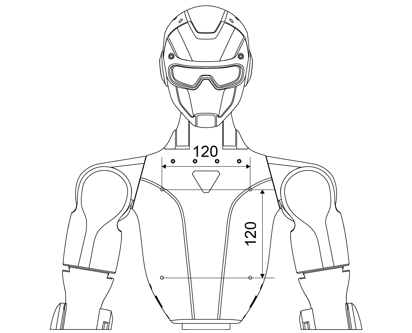 The Unitree R1 provides mounting points on the front chest area for installing external components or accessories. If access to these mounting holes is required, follow the procedure below carefully.