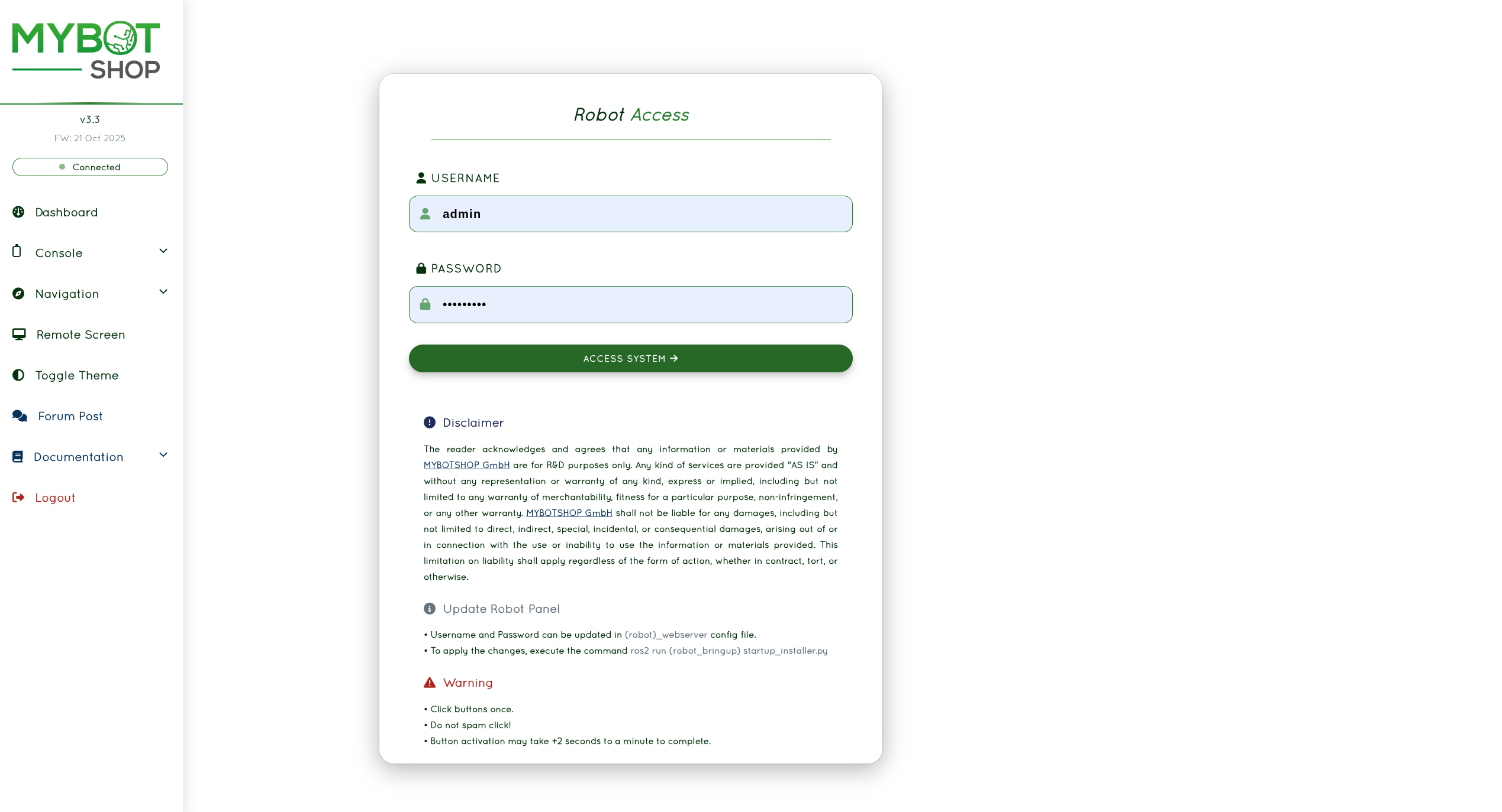 Access the robot via SSH: