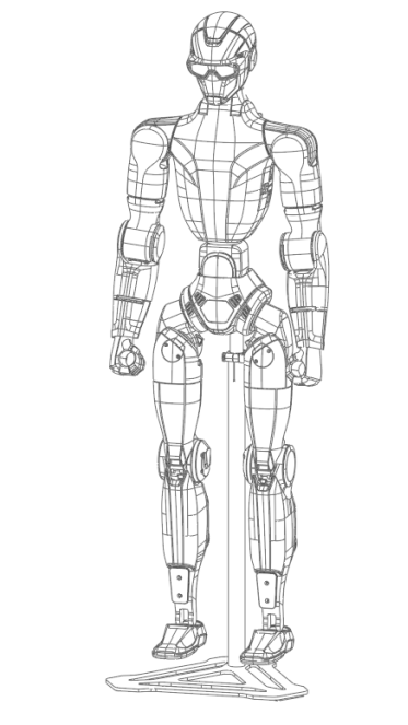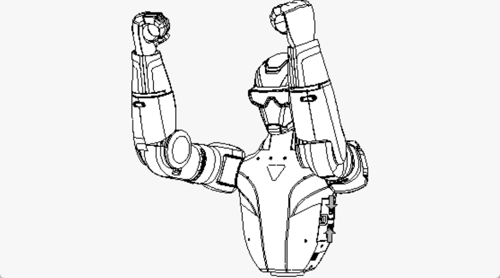 Before powering on, suspend the R1 using a suitable support frame, with the robot’s front facing forward. Verify that the surrounding area is clear of people and obstacles. Arrange the arms and legs in a natural resting posture as illustrated in the reference figure.