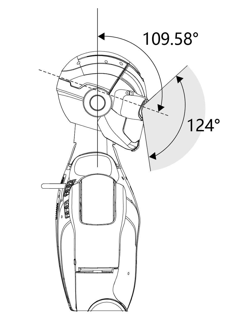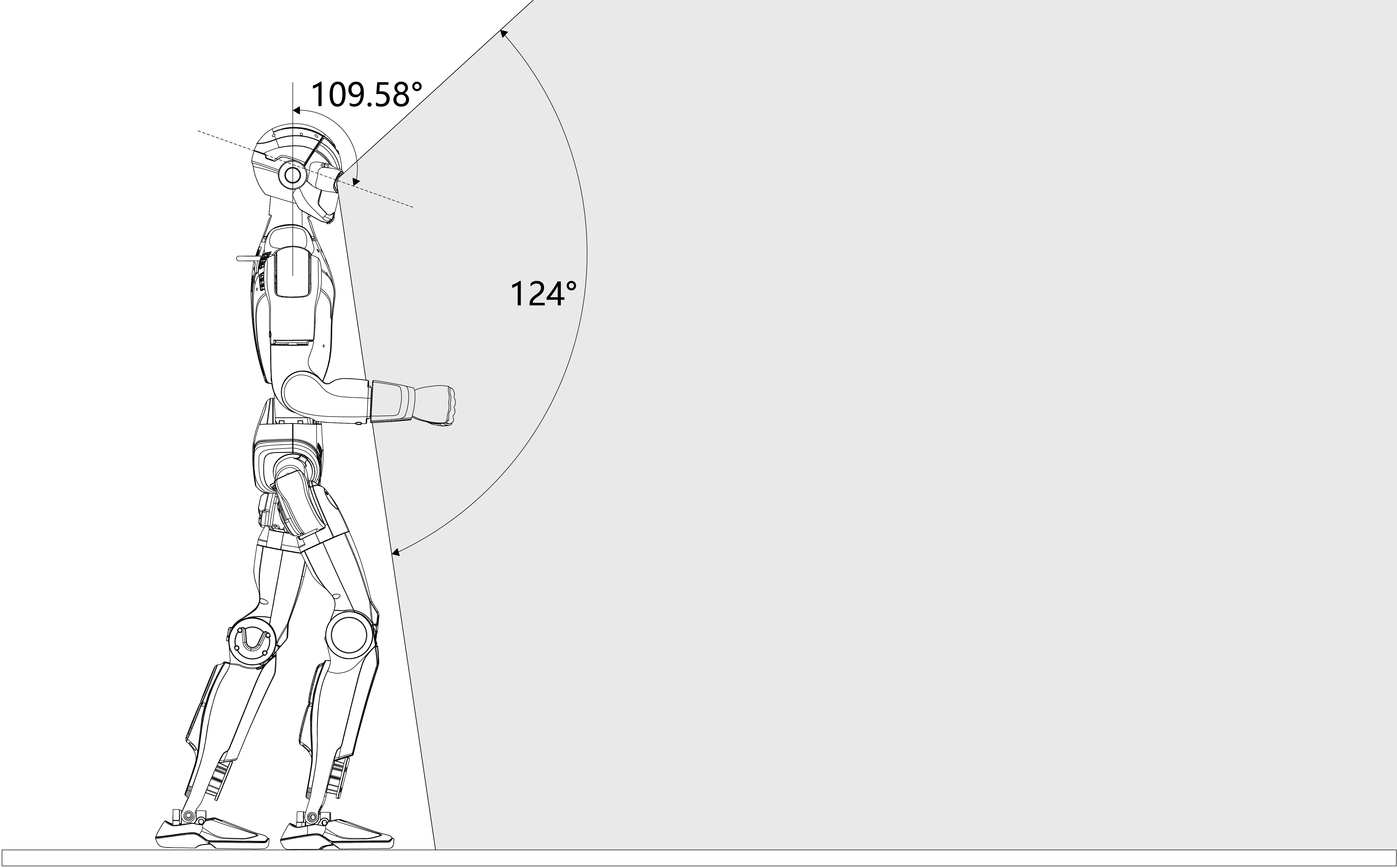 When using the binocular camera module, the effective vertical field of view is influenced by the head’s pitch motion range. For example, a vertical FOV of approximately 109.58° corresponds to the available head pitch movement range, allowing the robot to actively scan its surroundings.